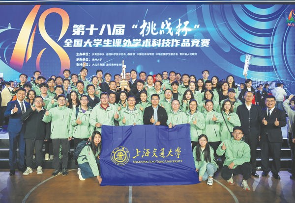 Shanghai Jiao Tong University achieved the highest honor at the 18th "Challenge Cup" National College Student Extracurricular Academic and Technological Works Competition, held in Guiyang, Guizhou province, from Oct 27 to Oct 31. [Photo provided to China Daily]