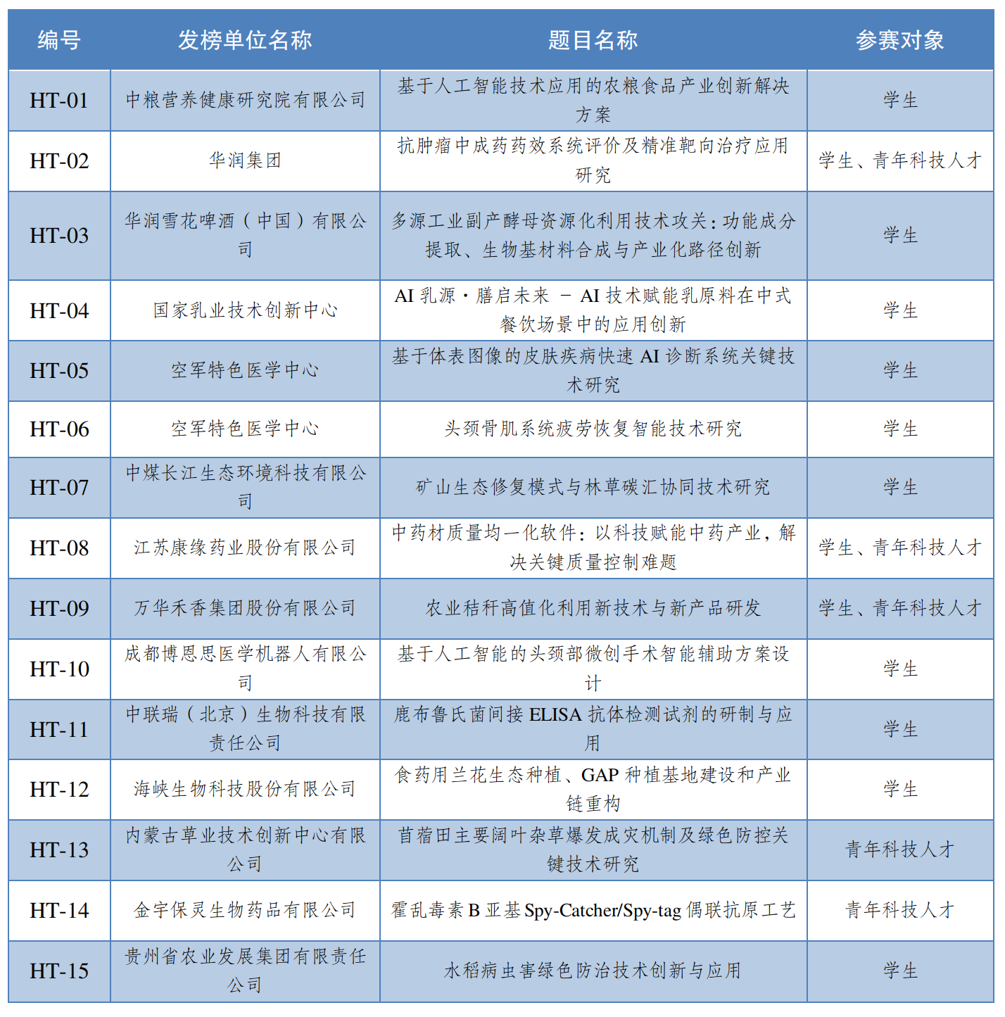 自2021年起,共青团中央在“挑战杯”全国大学生课外学术科技作品竞赛中设置“揭榜挂帅”专项赛,由企业、科研机构提需求、发榜题,组织青年揭榜答题。今年,赛事升级为中国青年科技创新“揭榜挂帅”擂台赛,共青团内蒙古自治区委员会和呼和浩特市人民政府共同主办其中的“生物医药”领域主擂台赛。