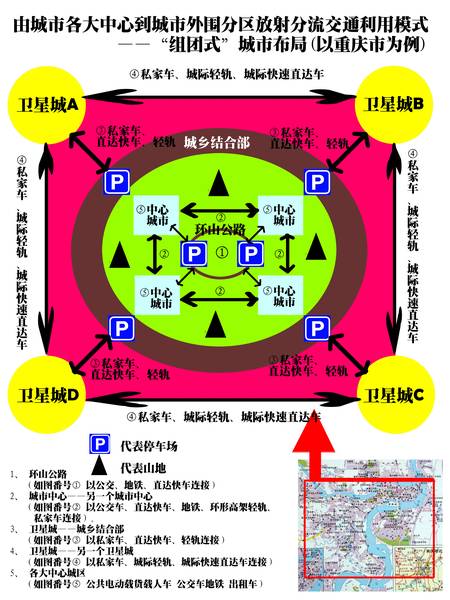 我们针对中国城市三大布局形式环形放射式、组团式、条带式分别提出缓解交通拥堵的创新模式“由城市各大中心到城市外围分区放射分流交通利用模式”以经济法律手段进行约束和规范,加大政府对交通基础和公共交通建设的投入,完善城市的布局结构,建立创新科学的交通管理模式。